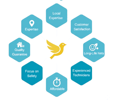 Long-Life Nets :Installation of weather-resistant and durable bird nets.